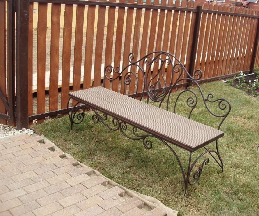 Кованые изделия – лучший выбор для поклонников роскоши и изящества. Однако этот вариант не подходит тем, кто ищет, как сделать лавочку своими руками. Качественные и красивые конструкции из металла изготовит лишь опытный кузнец.