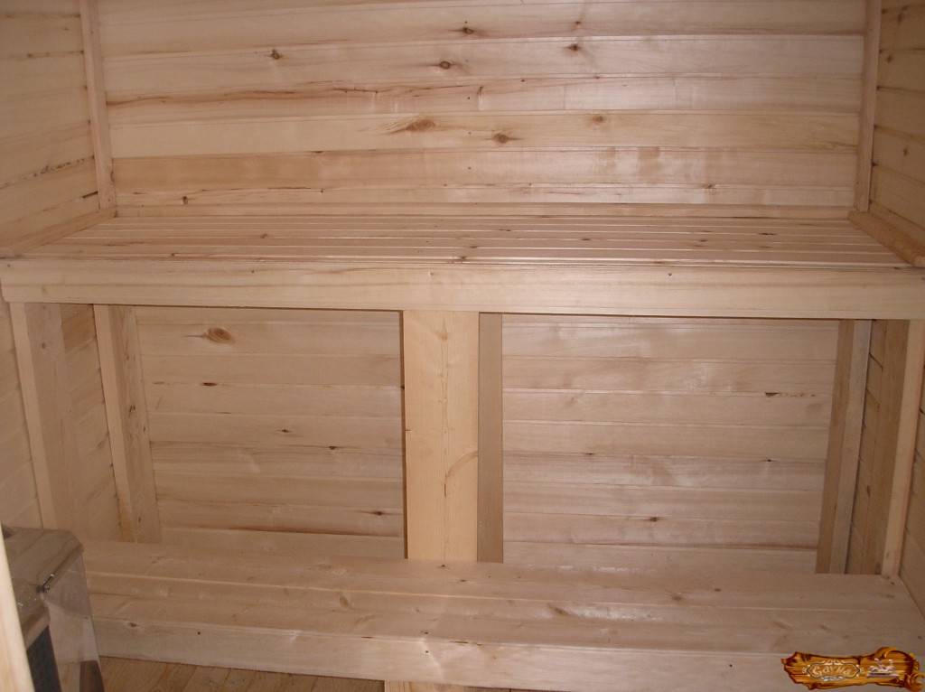 К примеру, если помещение имеет довольно большие размеры, то можно обустроить трехъярусные лавки. Верхний ярус может быть чуть длинней нижнего. Также могут быть съемные конструкции, они лучше всего подходят для маленьких помещений.