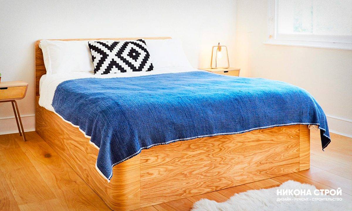 В отличие от остальных предметов мебели, которые должны быть открытыми и изящными, кровать в большинстве случаев имеет массивный, основательный вид. При этом ее цвет и фактура материала должны сочетаться с отделкой всех остальных поверхностей или мягко контрастировать с ними.