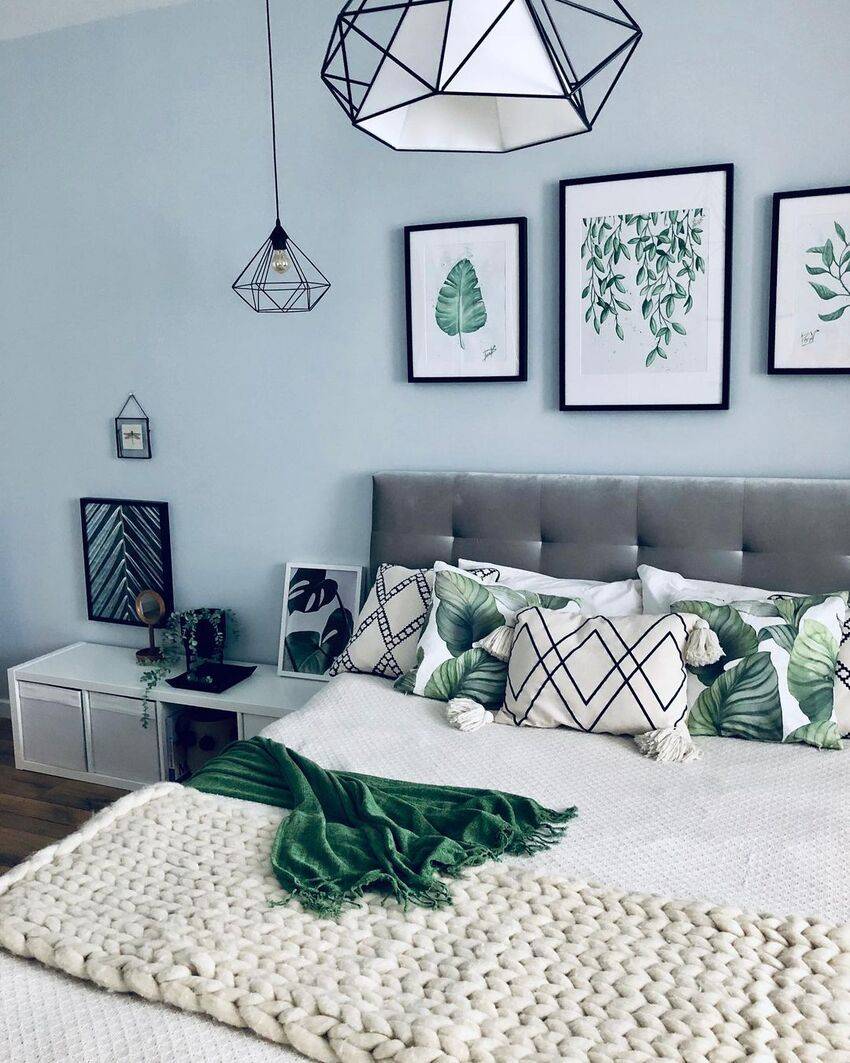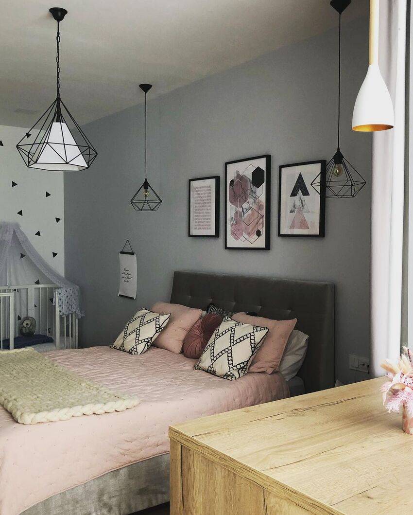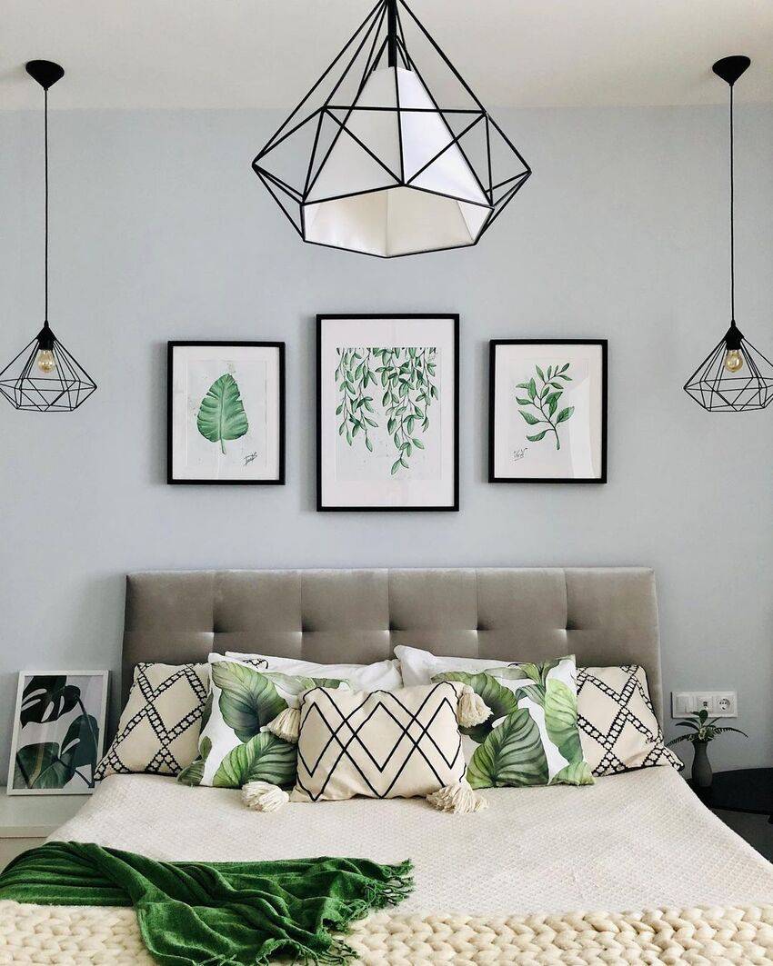 Лаконичность стен помогут украсить картины или семейные фотографии в простых рамках. В скандинавском стиле часто комбинируют несколько элементов разных размеров. Декор устанавливают в изголовье кровати или на стене, расположенной напротив ложа.