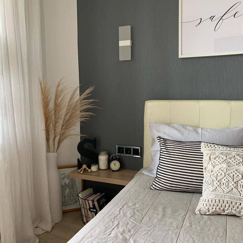 Скандинавский стиль не имеет строгих ограничений, поэтому дизайнеры часто используют цветовые акценты в интерьере спальни. Контрастный цвет на одной из стен сделает дизайн более сложным и привлекательным. Для реализации этой задумки используют краску или обои.
