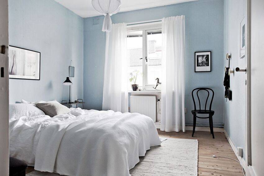 Этот цвет успокаивает, придает ощущение спокойствия, безмятежности и доверия. Поэтому отлично подходит для оформления спальни.