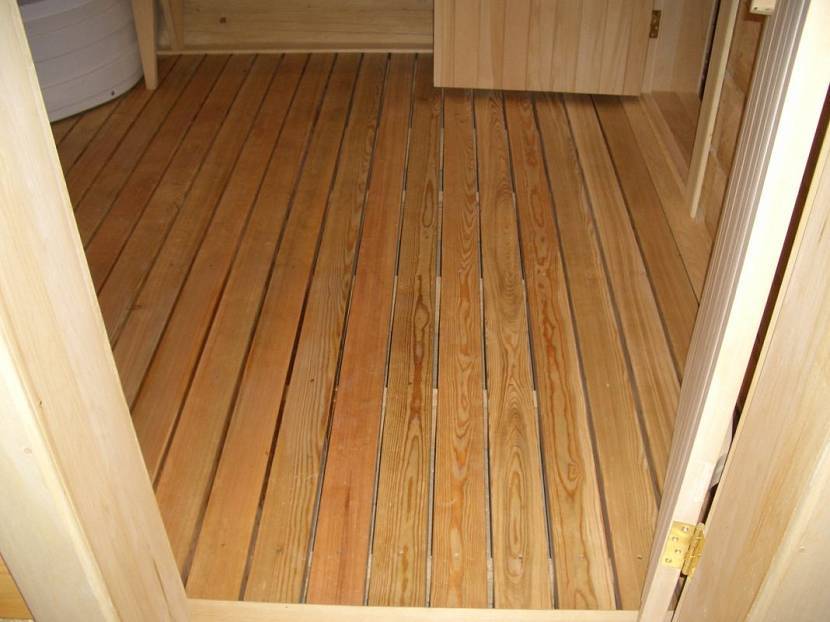 В рамках реализации первого правила мастера рекомендуют устанавливать специальные решетки из бруса, которые требуется сушить каждый раз после мытья.