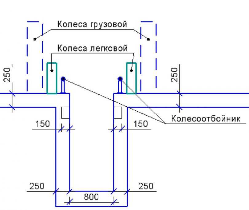Эскиз, где показана минимальная ширина смотровой ямыИсточник windsc.ru