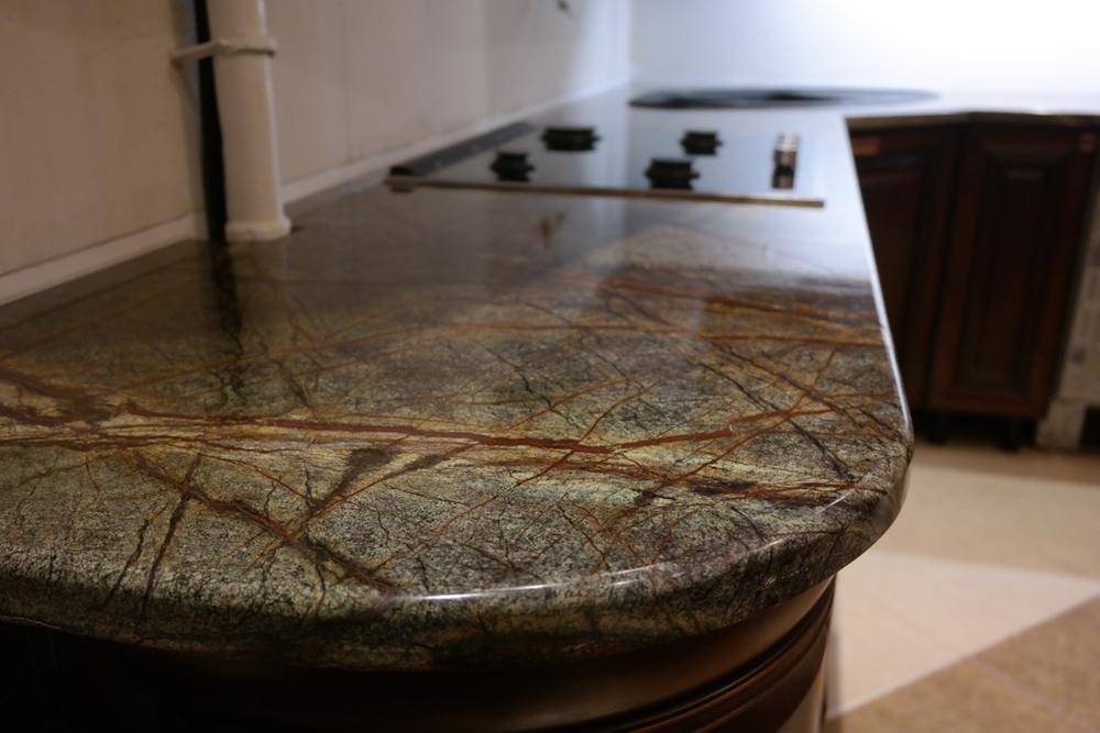 Для тех, кто не знает, хонингованная поверхность представляет собой матовую поверхность с отсутствием блеска. Общий вид такой столешницы будет зависеть от типа камня, но, в любом случае, на ее поверхности будет отсутствовать блеск, и она будет практически абсолютно гладкой. Отшлифованная отделка хорошо сочетается с мрамором, поскольку отсутствие блеска позволяет с большей легкостью скрыть любые дефекты или царапины.