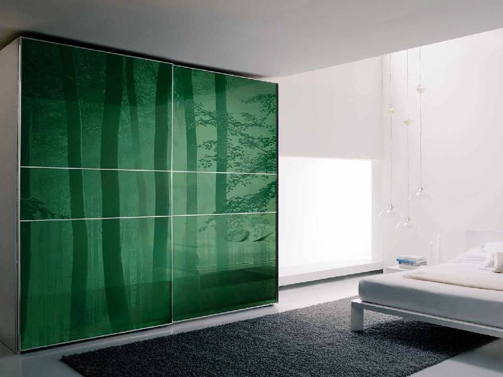 Правильный подбор декора поможет сделать предмет мебели «своим» в любом интерьере. Он будет уместен даже в минимализме, где мебель присутствует в мизерном количестве. Шкаф-купе в минималистической спальне должен иметь светлый и плоский фасад. Это могут быть белые панели или двери из стекла и зеркал. Не будет чужим здесь и пластик с фантазийными рисунками или древесной фактурой. Популярны акрилайновые фасады и глянец поверхностей. Стиль базируется на ощущении свободы пространства. Представленные варианты декора фасада шкафа полностью поддерживает стилистическую идею.