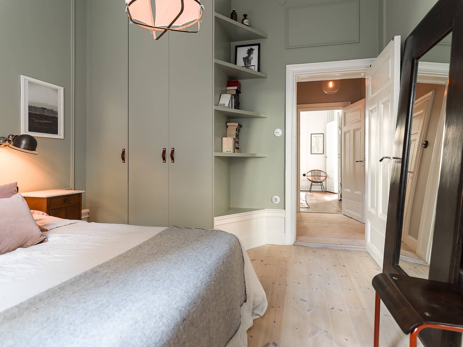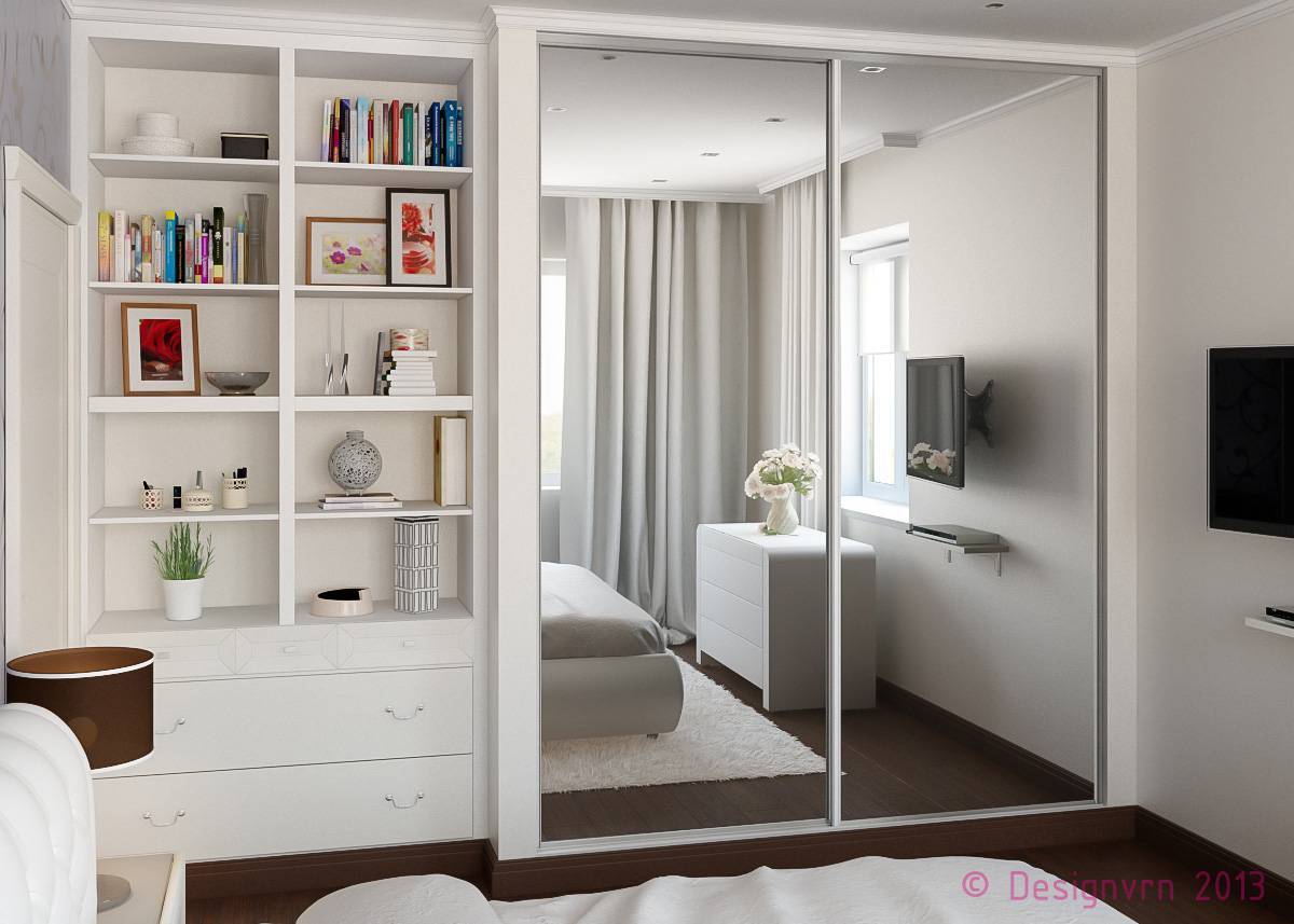 Даже в небольшой спальне можно найти место для встроенного шкафа. Это достигается подбором модели нужной конфигурации.