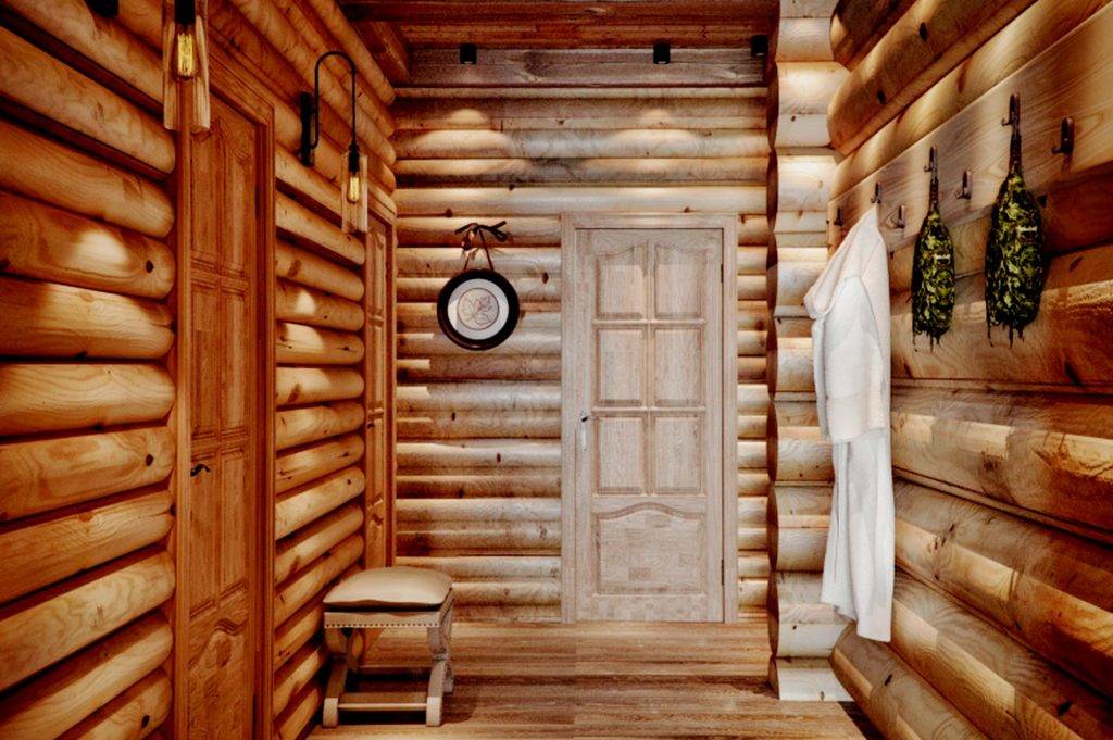 Кроме стеклянных полотен, в парную можно установить деревянную дверь. Полотна данного типа начали использовать для оформления бань и саун с тех времен, как такие здания появились