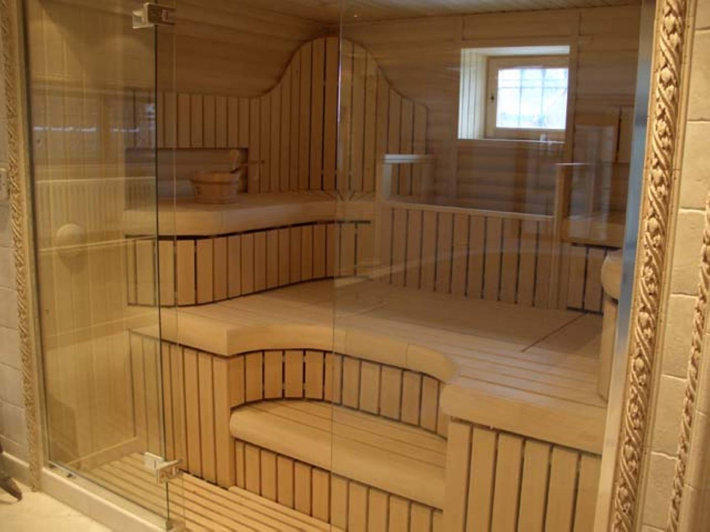 Для таких помещений подходит вариант из массива, а также комбинации материалов. Удачное решение — распашные модели деревянные со стеклом от Sawo. Они предоставлены коробкой и основой из кедра или осины. Саво из бронзы удачно дополняет интерьер.