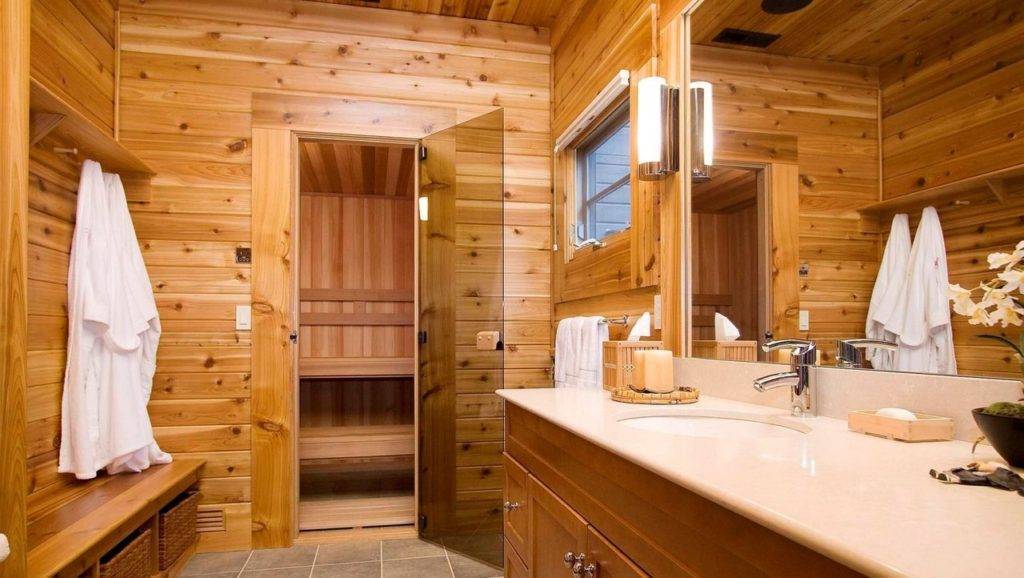 В русской парной температура ниже, зато влажность высокая, дерево в таких условиях разбухает, меняя геометрию коробки. Поэтому тут лучше ставить металлический короб.