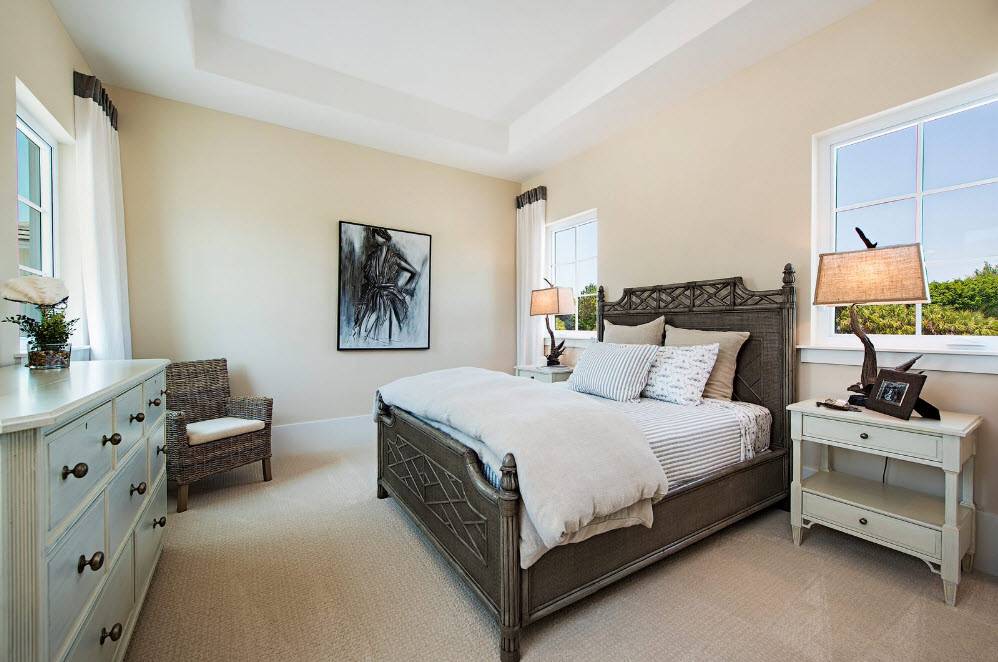 Бежевый и пастельный желтый цвета любую спальню делают солнечной и уютной, что помогает успокоиться и заснуть.