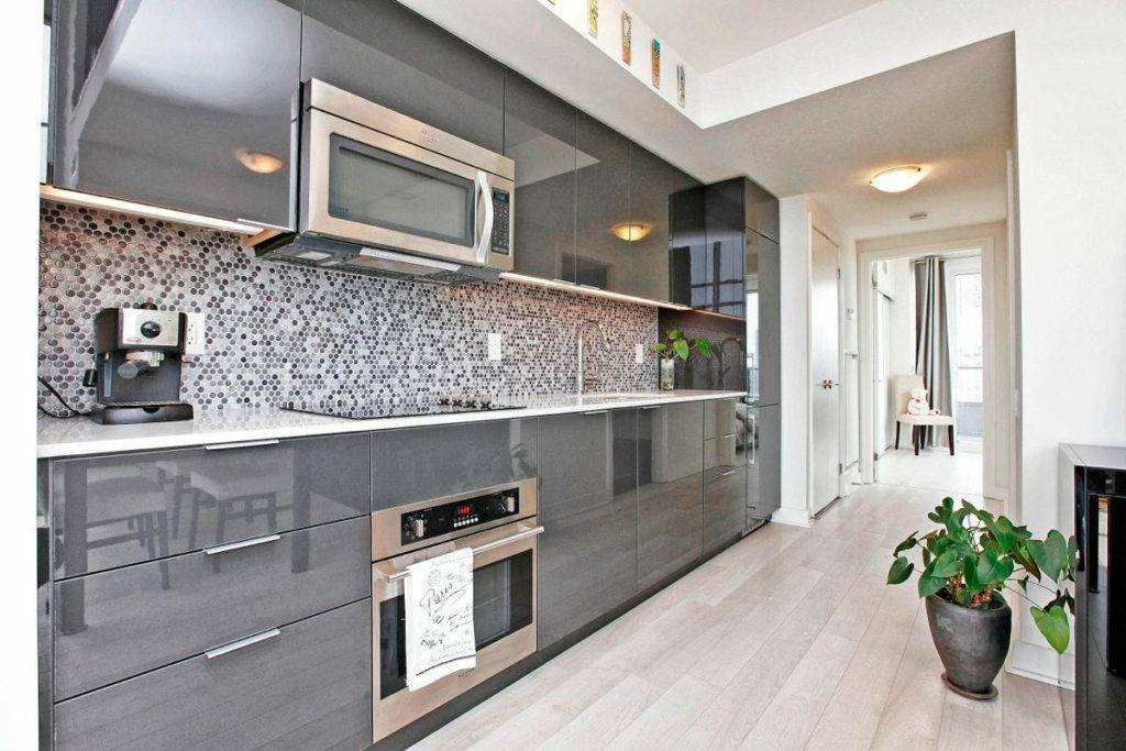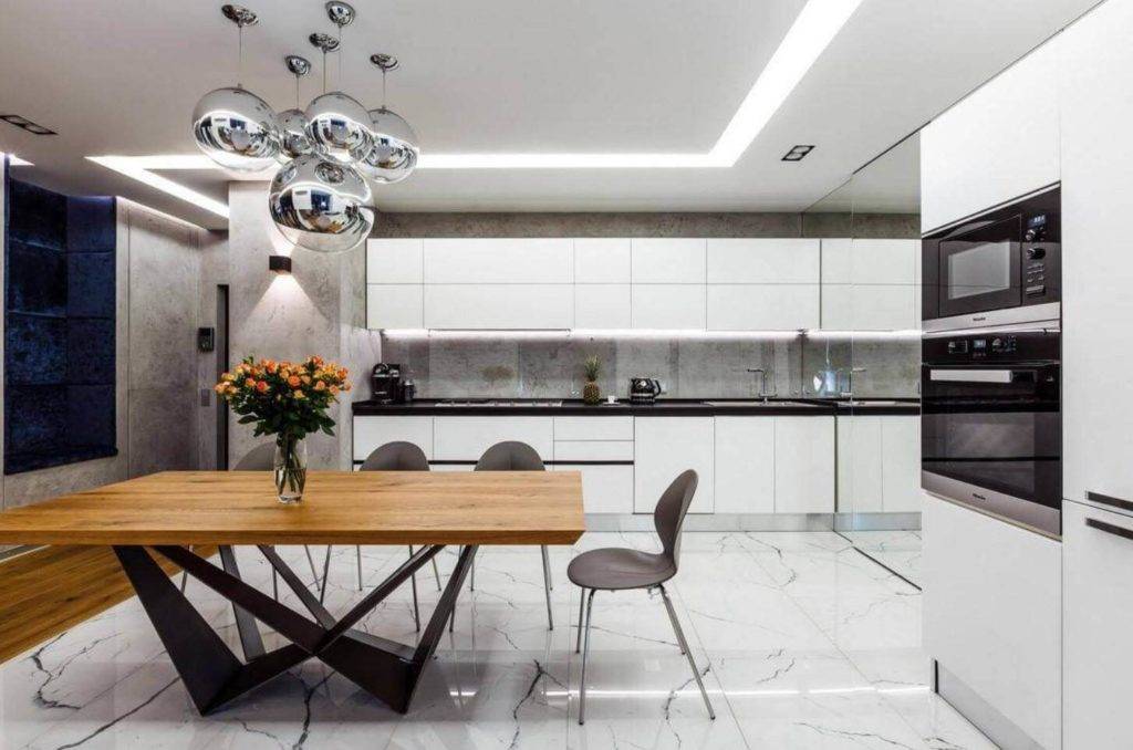 Для этого стиля характерно использование современных материалов, чтобы создавался эффект блеска от отражающих покрытий и блеска для зрительного увеличения пространства.