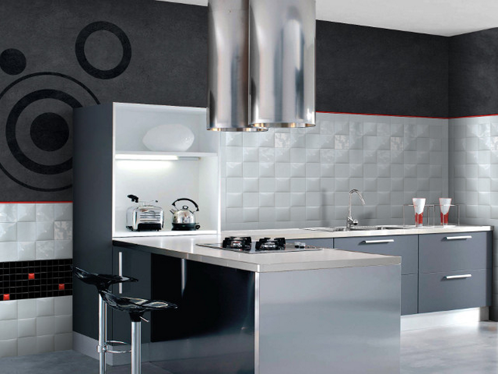 Можно наклеить фотообои выполненных в урбанистическом сюжете. Керамическая плитка может быть выложена как мозаика, а может быть рельефной, обладающей объемной текстурой.