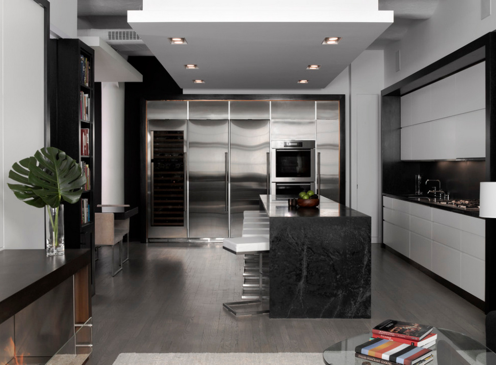 А как на счет затемнения комнаты при необходимости? Никаких штор и занавесок в кухонной части! Жалюзи, рулонные или римские шторы. На самом деле, в этом есть логика – тонкую ткань на кухне легко испачкать или повредить. Так что это решение продиктовано не только стилем, но и соображениями практичности.