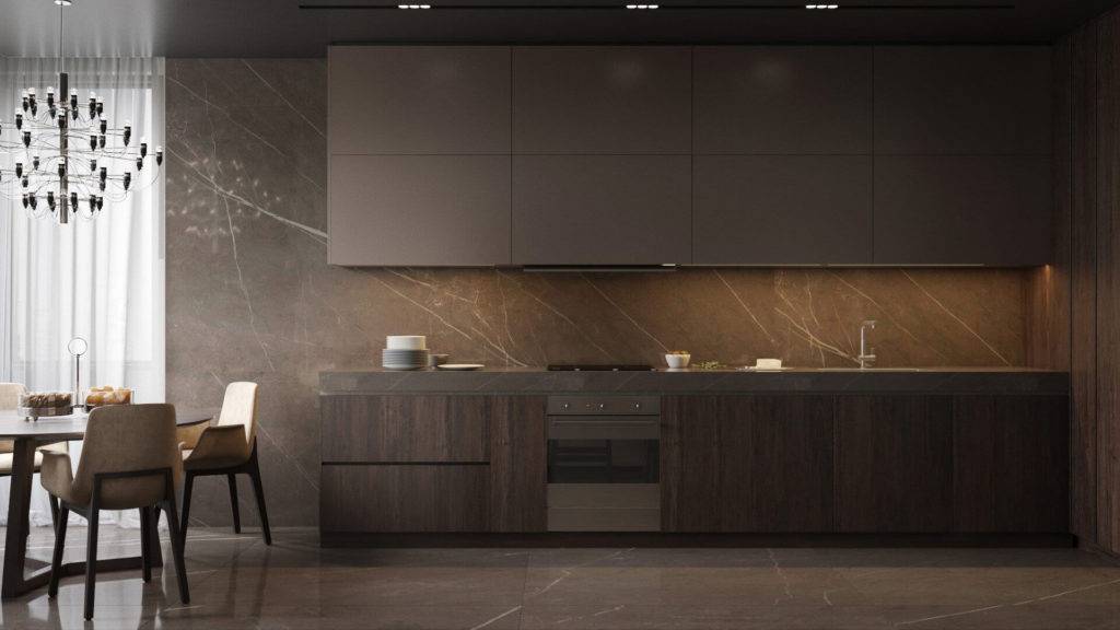 А если встроить в них светильники — это удлинить его вертикально и создаст теплую атмосферу на кухне.