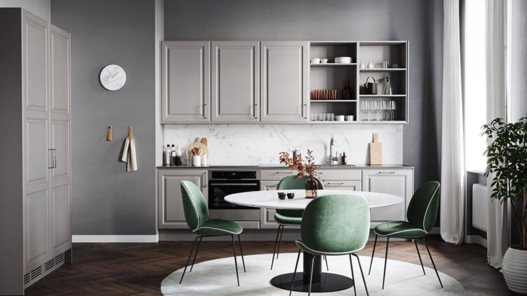 • Спокойная атмосфера. Серый цвет (наряду с другими мягкими нейтралами, такими как белый или кремовый) вызывает глубокое чувство расслабления – идеальное сочетание для приготовления пищи.