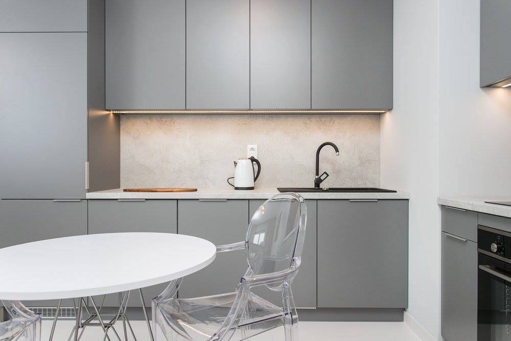 Пожалуй, серый цвет на кухне – один из самых неприхотливых цветов. Он превосходно скрывает: грязь, пыль, разводы и даже мелкие крошки.