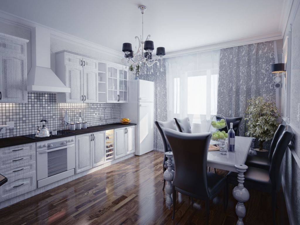 Бело-серая мебель может быть оформлена в современном стиле техно или классическом винтажном. Эти цвета подходят к большинству стилей современного декора. Эмоциональную окраску дизайну придадут небольшие дополнения дружественных тонов на шторах, карнизах, полу или столешнице.