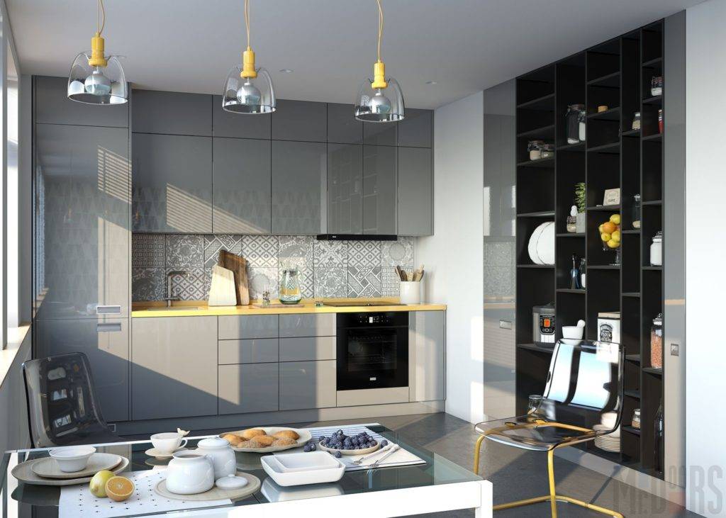 Серая мебель будет хорошо смотреться в просторных интерьерах, потому что она чрезвычайно элегантна, независимо от того, отделана ли она глянцем или матом. Если вы решили отделать кухню глянцем, вы получите интерьер в стиле гламур. Этот тип фасада будет отражать как солнечный свет, так и искусственный свет. Однако, если кухня имеет небольшую площадь, белая мебель будет лучше, а серый можно добавить в виде бытовой техники или аксессуаров.