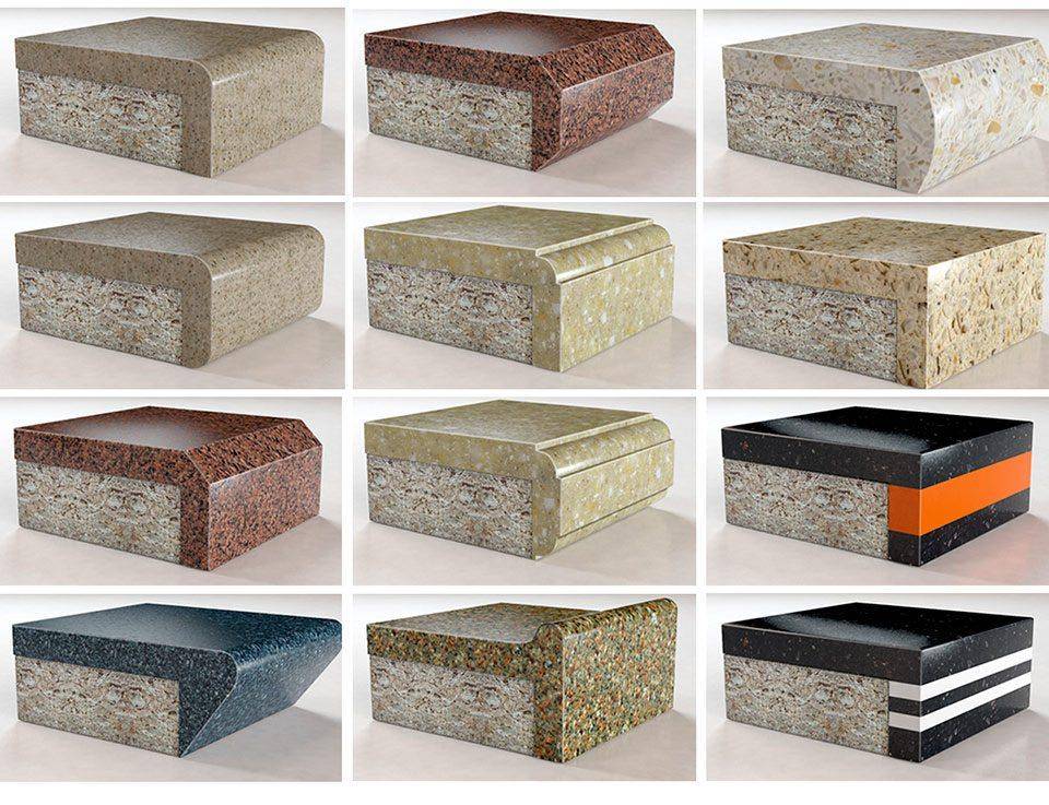 Искусственный камень изготавливают из множества материалов, включая минеральные наполнители и полимерные материалы матрицы. Примерно половина столешниц изготавливается с применением высокопрочного бетона и полимербетонных композитов.