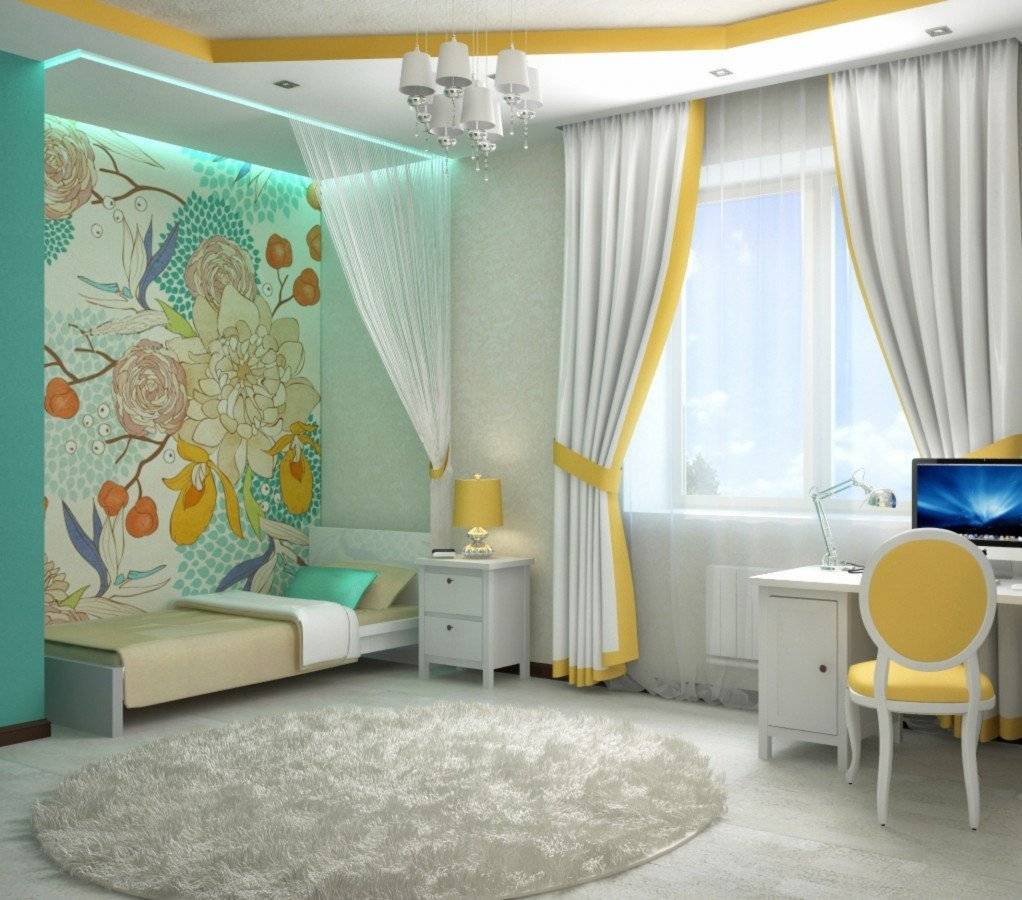яркие шторы становятся главным акцентом в интерьере комнаты подростка