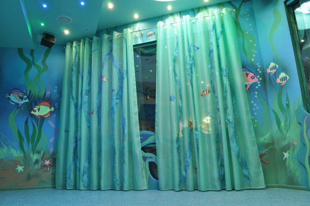 Морской стиль — в занавесках используются тона, которые напоминают море: лазурный, зелёный, бирюзовый, белый, синий и так далее. Шторы должны быть длинными и лёгкими, напоминающими паруса. Такой дизайн будет интересен детям 4–6 лет.