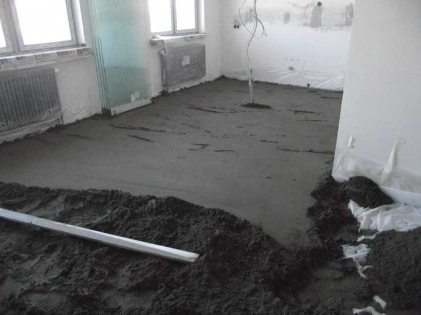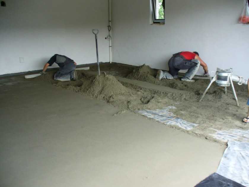 По истечении 12 часов, когда стяжка застынет, разрешено свободно ходить по ней. Отметим, маяки должны находиться внутри раствора.