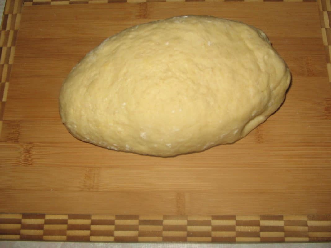 Приготовьте все необходимые продукты, они должны быть комнатной температуры. После этого нужно замесить тесто из этих продуктов, но ни в коем случае не добавляйте муку сверх положенной нормы. Постарайтесь вымесить тесто, чтобы оно стало эластичным и мягким. Оставьте в теплом месте на час-полтора.