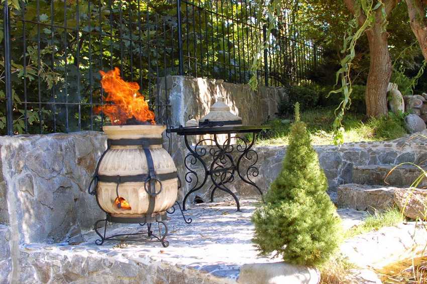 Переносной тандыр на металлических ножках можно устанавливать в любом удобном месте.