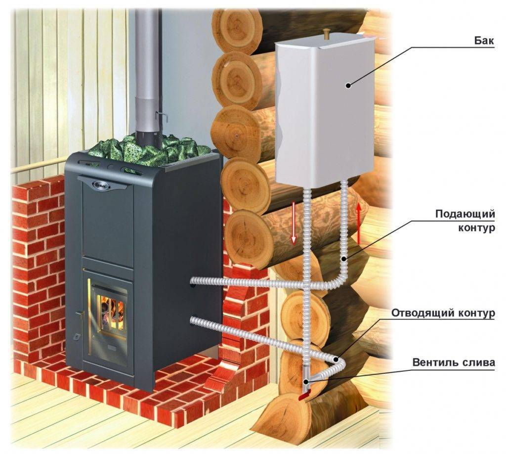 - Возможность установки бака в помещении, которое располагается ближе к парилке.