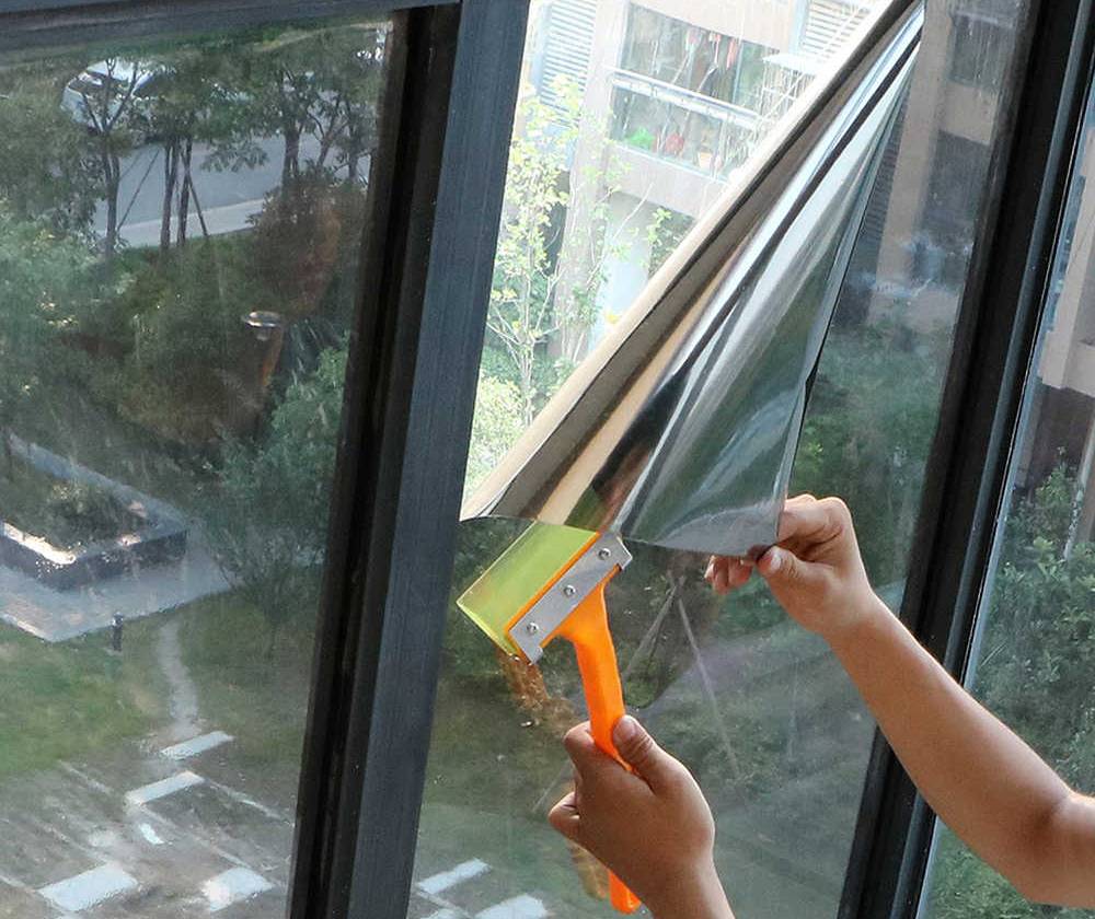 Как и тонирующая пленка, зеркальная производится с определенной градацией степени светопроницаемости. Рекомендовано выбирать материал средней прозрачности, так как слишком темная способна ухудшить обзор изнутри квартиры на улицу и сделает комнату темной, а слишком светлый тон пленки попросту не даст желаемого результата.