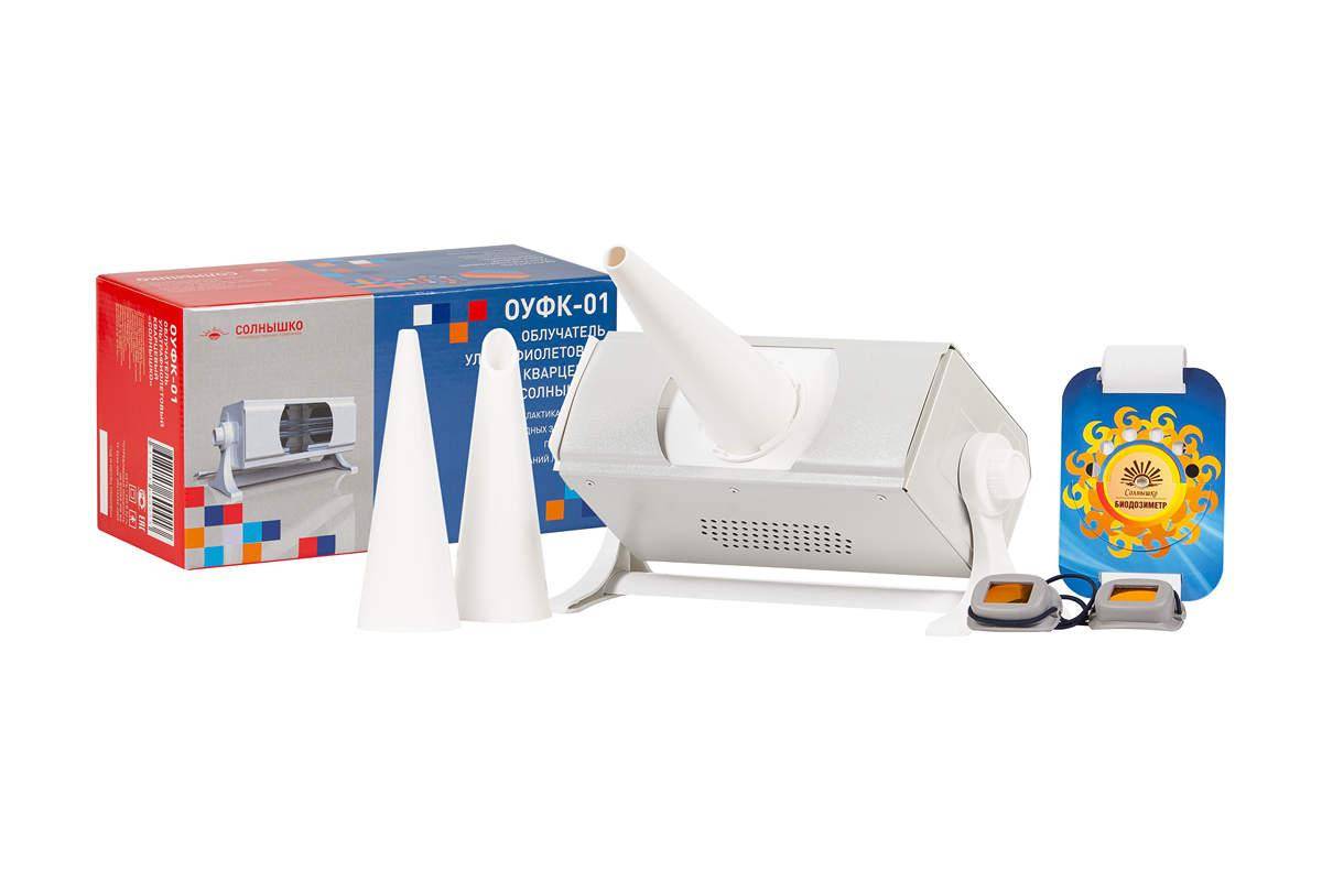 Данный прибор может применяться для проведения локальных и общих облучений при различных заболеваниях кожи, травмах, артритах, а также для профилактики ОРЗ и гриппа. В облучателе ОУФК- 05 предусмотрено два типа ламп с ультрафиолетом длинного и среднего волновых спектров (УФА и УФВ). Благодаря такому излучению при использовании устройства в домашних условиях удается избежать повреждений кожи в случае длительного применения. Прибор способен работать в циклическом режиме в течение 8 часов, с учетом, что время работы его будет 30 минут, а перерыва —15 минут. После включения работать устройство начинает через 5 минут.