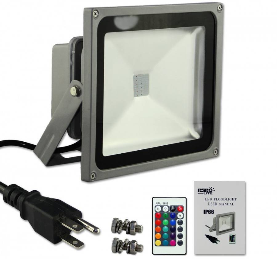 Поэтому мощность светодиодных прожекторов не пропорционально влияет на площадь освещения. Самый распространенный вариант для садового участка – это прибор мощностью около 30 Вт.