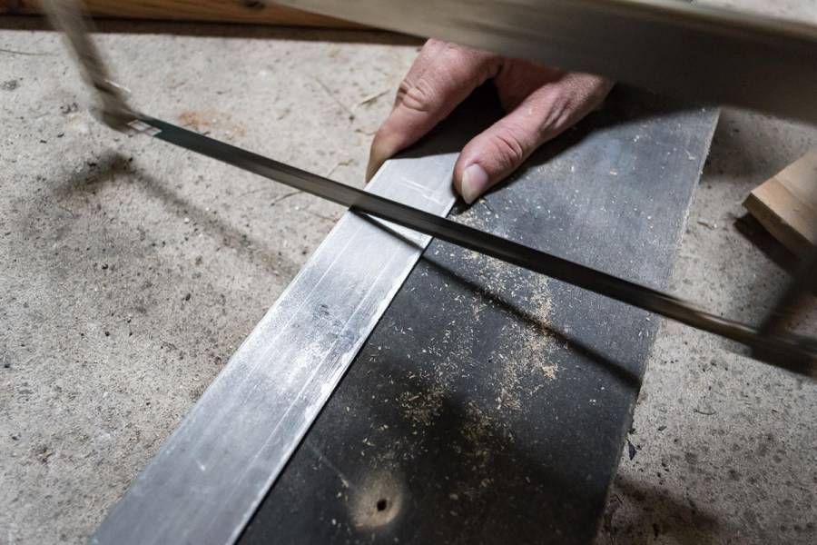 Изготавливается из инструментальной стали разных сортов, которая отличается прочностью, гибкостью, устойчивостью к термическим нагрузкам. Для дополнительного улучшения технических характеристик лучшие производители используют закалку. От коррозии металл должен иметь защиту. От длины зависит производительность, сфера применения. Модели 25-35 см используют в саду, при работе с брусом 100х100 мм, неширокой доской.