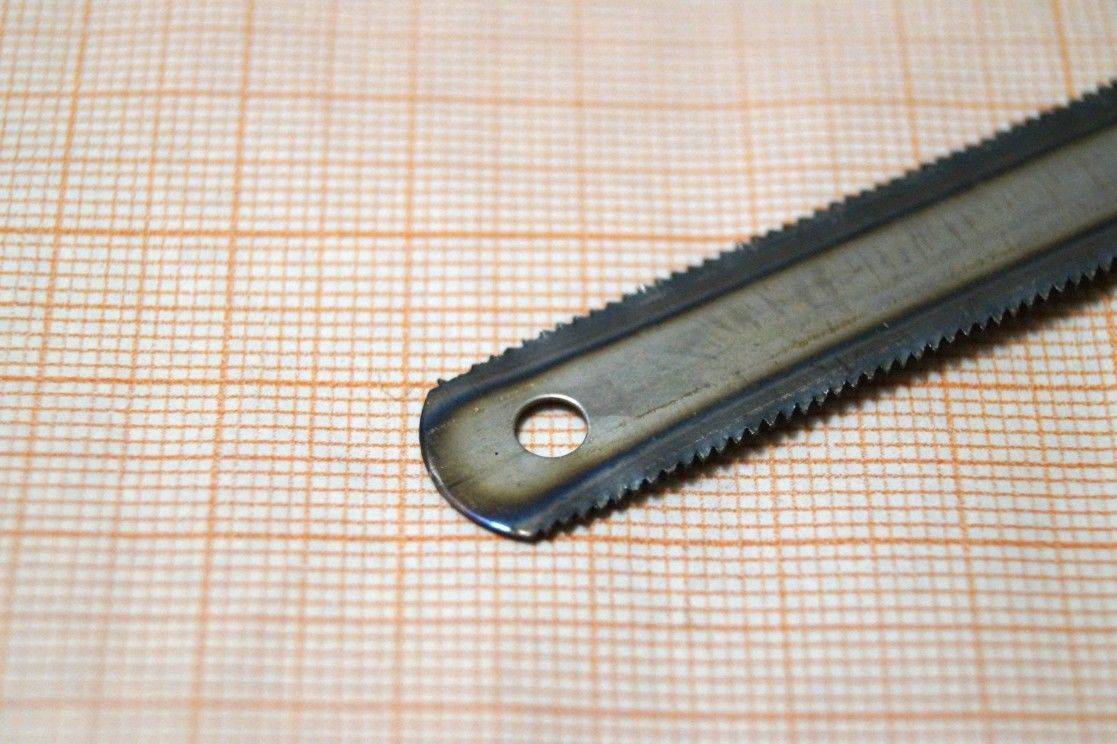 Данный элемент важен тем, что от размеров зуба на ножовке полностью зависит скорость, а также точность среза. Стоит заметить, что число зубьев на миллиметр полотна обозначается коэффициентом TPI. То есть если в работе надо точность, то рекомендуется осуществлять выбор инструмента с наибольшим показателем TPI.