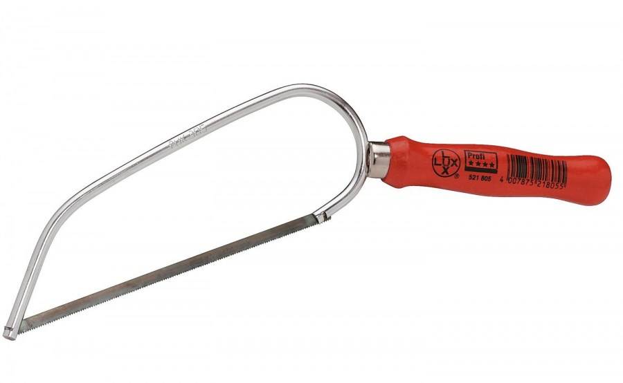 Такое название получила благодаря схожести со стрелковым луком. Прекрасно сгодится для удаления небольших суков и веток, хотя также может справляться и с более твердым материалом. Отличительная черта лучковой ножовки – тонкое полотно закрепленное в единой оправе с обеих сторон. Размеры варьируются от 300 до 910 мм в длину.