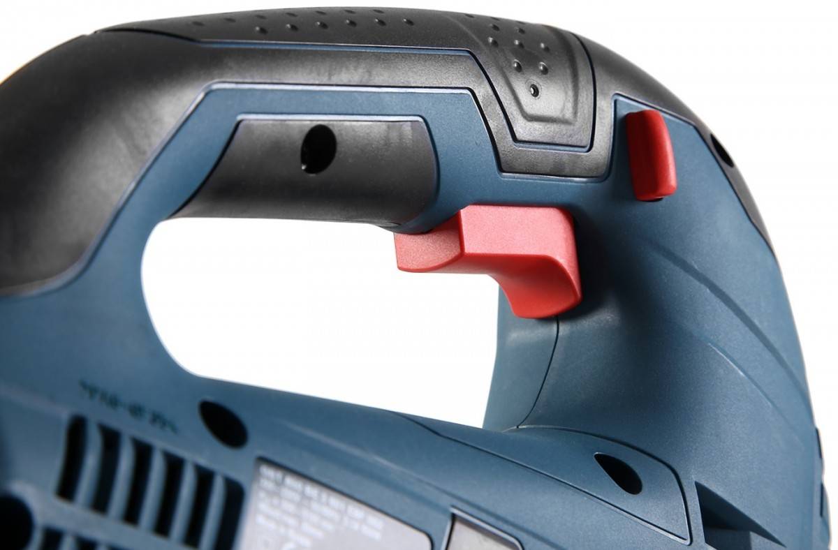 Характеристики аппарата великолепные, он мог бы возглавить рейтинг электролобзиков для дома, но большой вес и грибовидная рукоятка портят впечатление. Одной рукой им невозможно пользоваться. Есть плавный пуск, что снижает риск получить травму. Подошва стальная, прочная повредить её невозможно. Увеличить объёмы и улучшить качество работы призван встроенный трехступенчатый маятниковый ход.