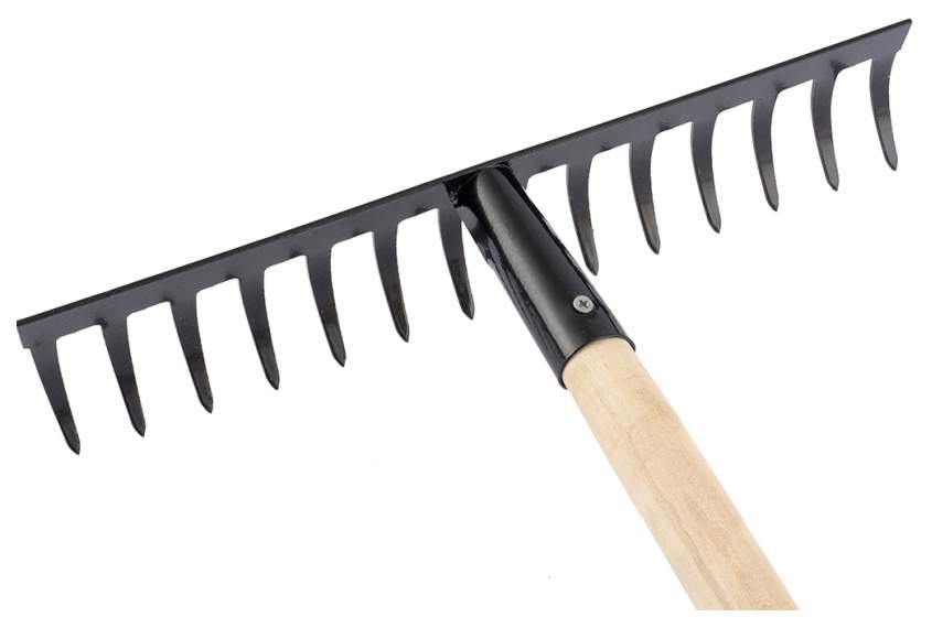 Классическая модель, которой можно делать практически все в саду. Такими граблями с металлическими зубьями рыхлят и разравнивают почву, а с деревянными – счищают с участка скошенную траву и листья.