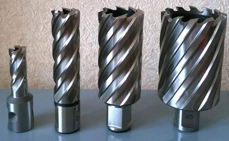 Для получения отверстий в металлических заготовках применяются кольцевые фрезы, которые еще также называют корончатыми сверлами или коронками. В сравнению со спиральным сверлом, корончатое сверло обеспечивает повышенную производительность (скорость сверления в 4 раза выше), но самое главное, они позволяют сверлить отверстия больших диаметров.