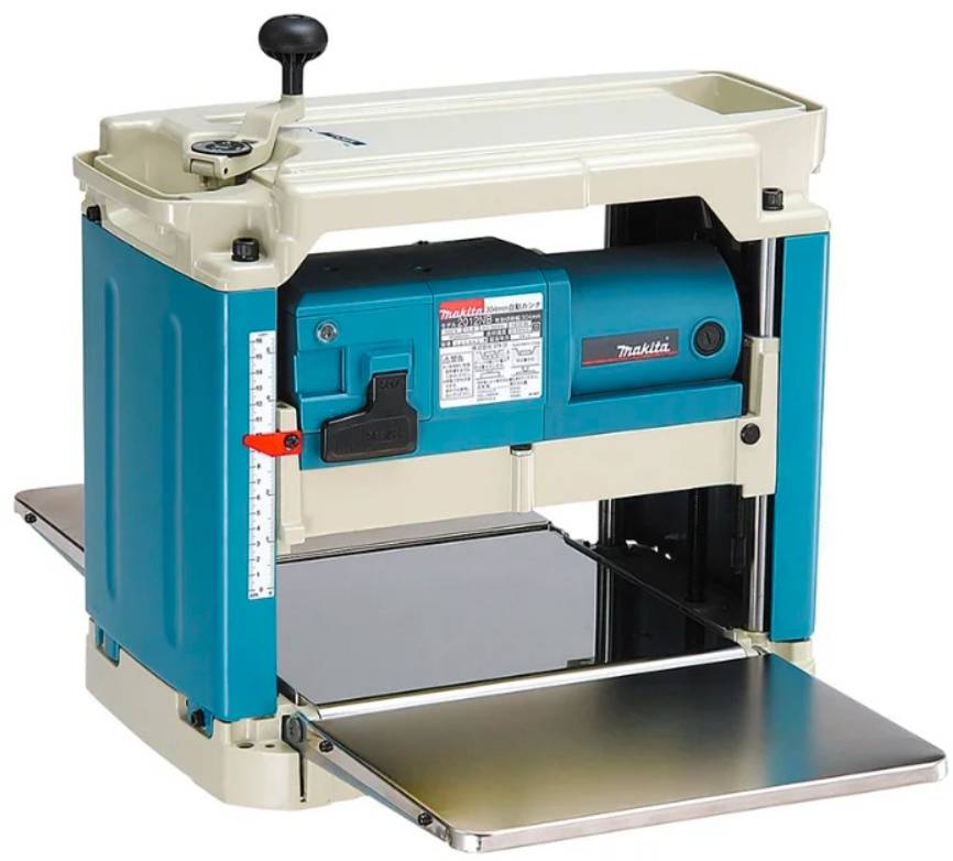 Мощный двигатель способен снять максимальное количество миллиметров дерева за один проход.Обратите внимание, как выполнен указатель высоты строгания. Он должен быть максимально удобен при пользовании