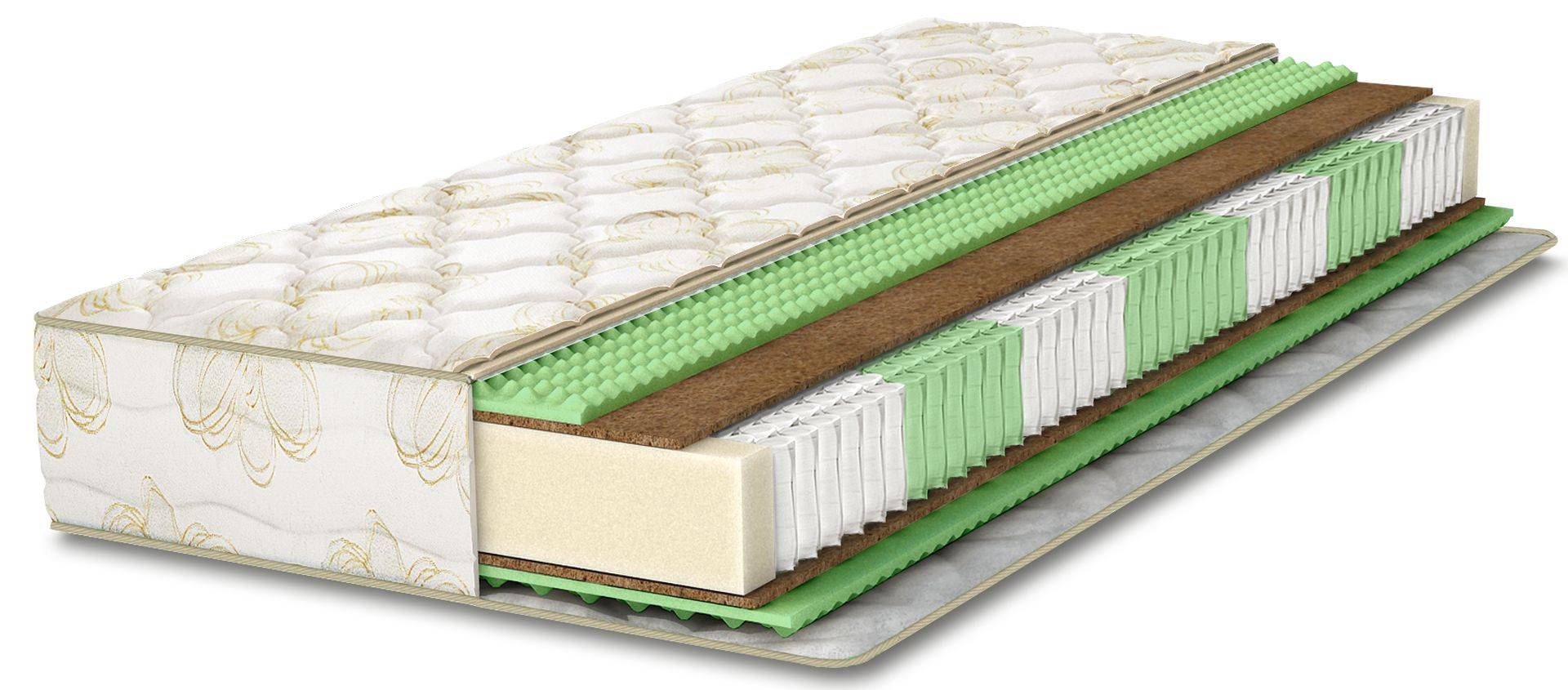 - Наполнитель — пенополиуретан и кокос, пропитанный латексом.