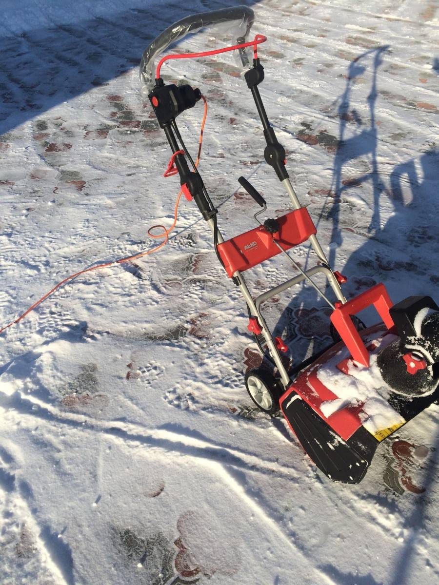 Вывод. Этот аппарат вошел в рейтинг электрических снегоуборщиков благодаря крупному для этой категории ковшу 46х30 см и дальности выброса 10 м. Он отлично подойдет для расчистки тротуара или стоянки перед магазином в городе, а его цена одна из самых доступных. Благодаря весу 15 кг его легко отнести на место работы, чтобы не катить на маленьких колесах.