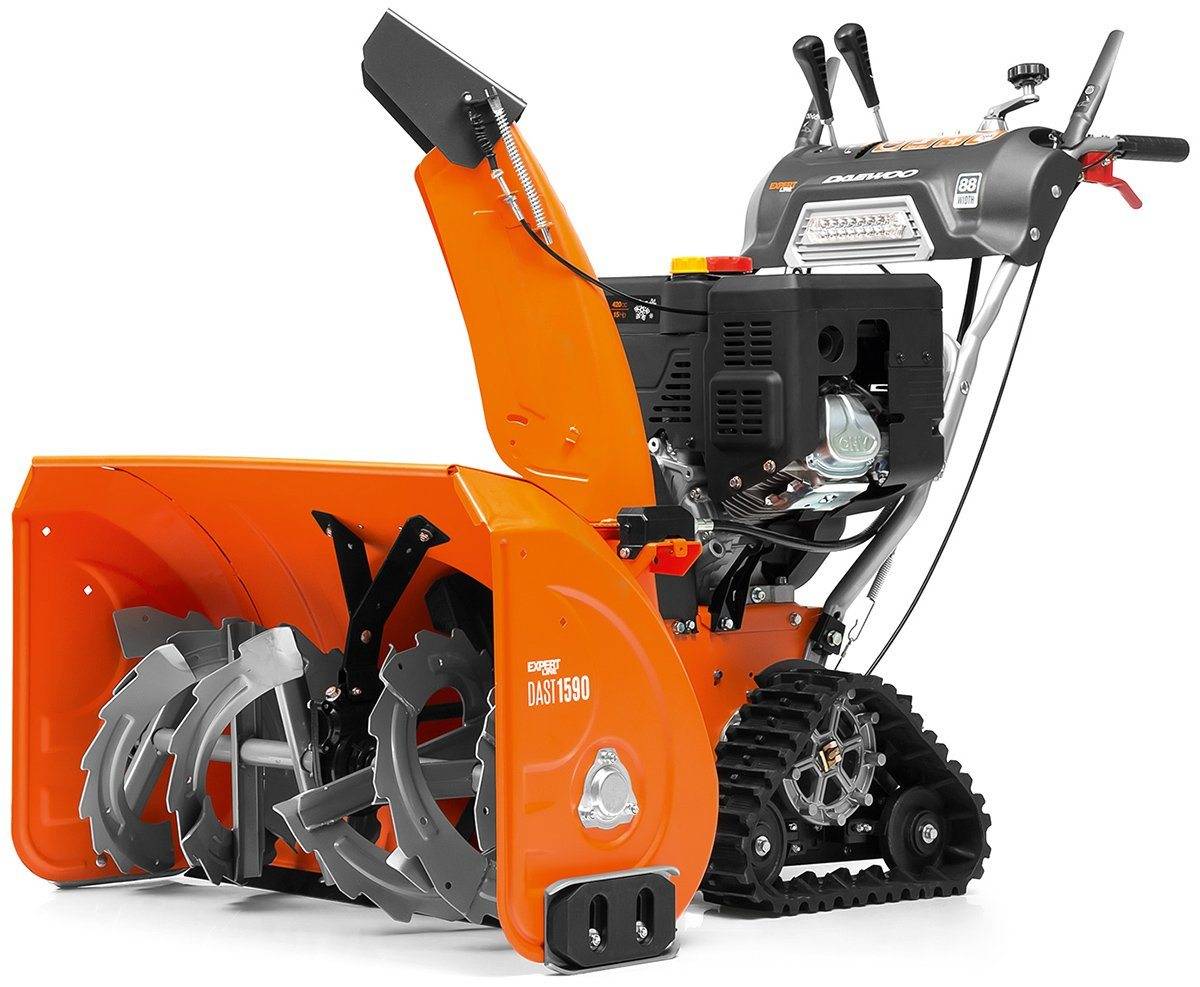 Среди гусеничных снегоуборщиков, рекомендованных к покупке в 2020 году, эта модель числится среди самых популярных. Относится к крупногабаритной технике, большой ковш 88х54 см позволяет очистить большую территорию за короткое время. Мощность двигателя составляет 15 л. с., заводится он вручную или при помощи электростартера.