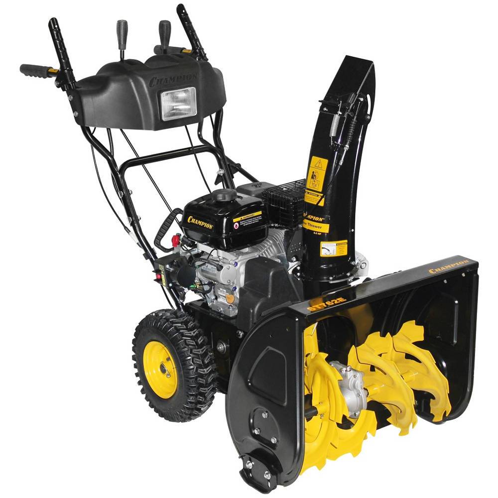 Бензиновый снегоуборщик от всемирно известного производителя бензиновых инструментов. Оснащен двигателем объемом на 208 см3, мощностью на 6.3 л.с. Есть электростартер для более простого запуска мотора. Топливный бак вмещает 2.6 литра бензина. Система очистки – двухступенчатая, рабочие элементы техники изготовлены из металла. Снегоуборщик имеет 6 передач для движения вперед, 1 передачу для движения назад. Из дополнительных функций необходимо отметить наличие подогрева для ручек, фары, возможности управления одной рукой. При желании, можно отрегулировать рукояти по высоте.