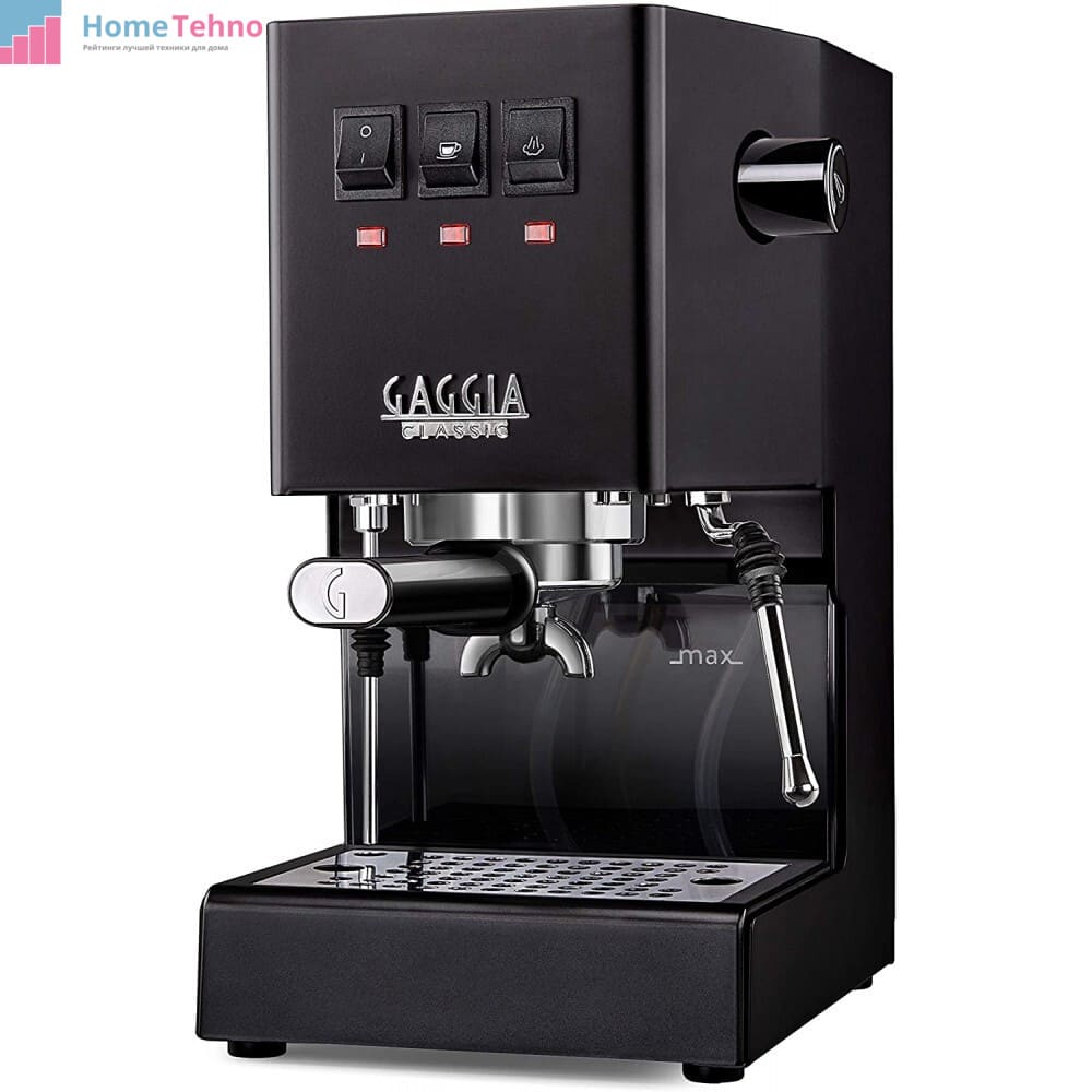 Победителем рейтинга рожковых кофеварок становится Gaggia Classic. Она сочетает в себе все функции профессиональной кофемашины и готовит на 3 видах кофе: молотом, чалдах и капсулах (для этого есть специальный фильтр). Все кофемашины Gasian оснащены качественной мощной помпой, что позволяет им варить кофе на профессиональном уровне с давлением 15 бар и мощностью 1425 Вт. Gaggia отличается стильным дизайном и простым механическим управлением. Ёмкость для воды составляет 2,1 литра, что позволяет реже доливать воду при приготовлении сразу нескольких порций (за один раз можно заварить сразу две чашки). Капучинатор позволит готовить напитки с нежной пенкой.