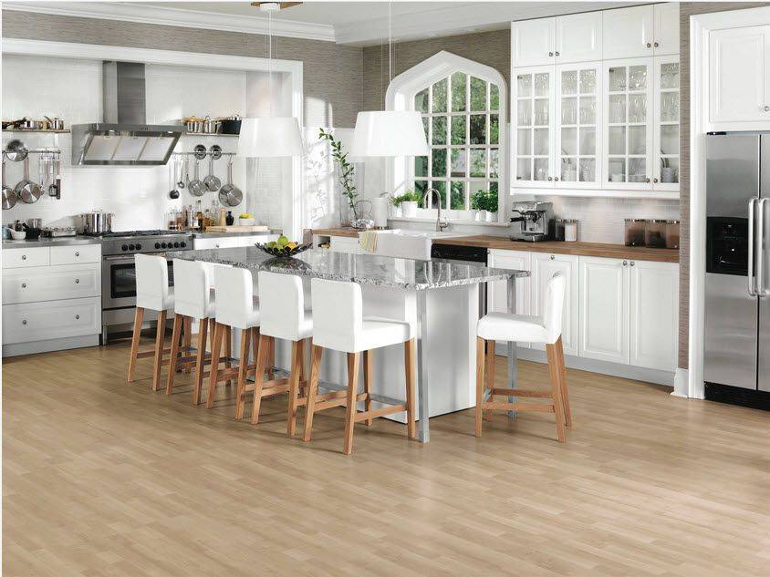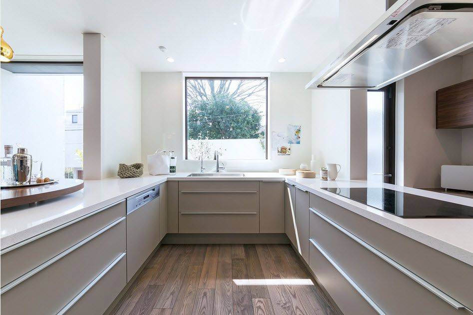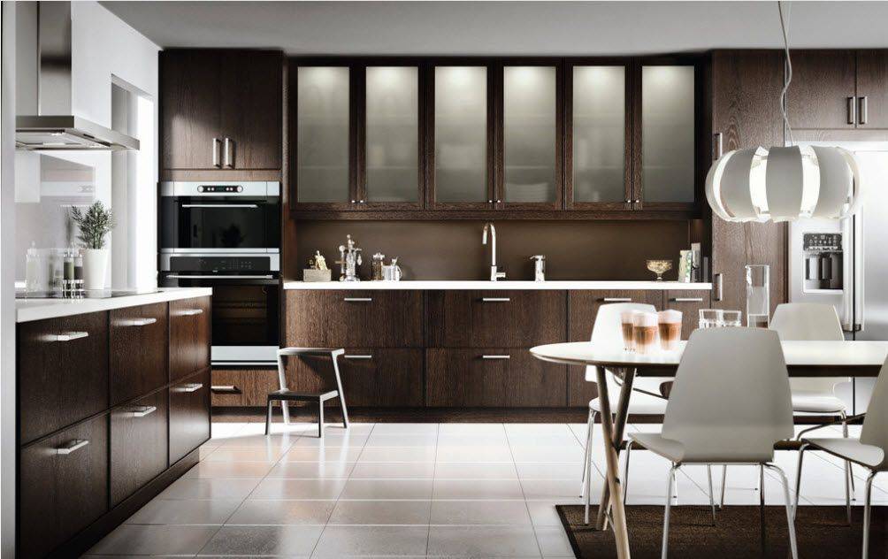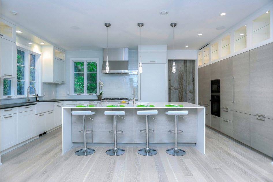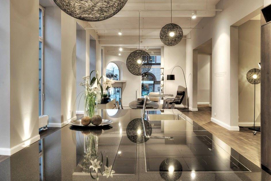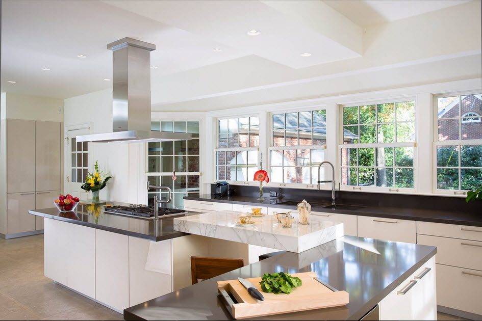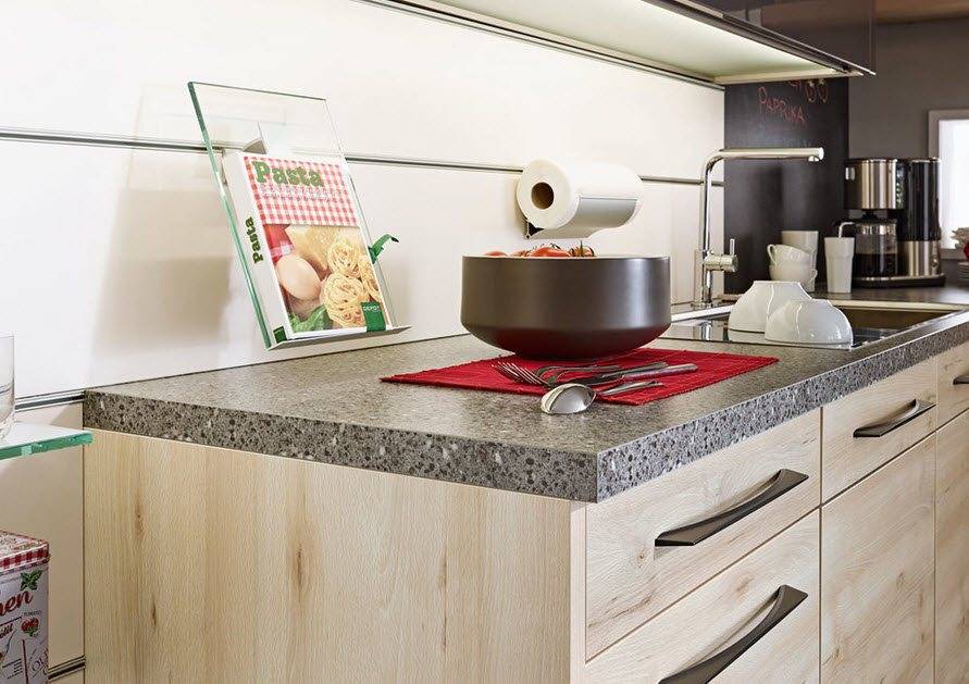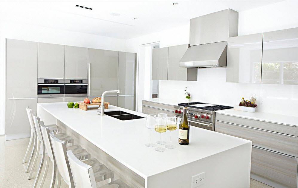Не следует игнорировать и недостатки этого вида поверхности кухонного гарнитура. На ней возникают блики, поэтому выбор и размещение осветительных приборов должны быть тщательно продуманы. Большие окна на кухне также необходимо защитить от слишком ярких солнечных лучей, которые могут вызывать дискомфорт.