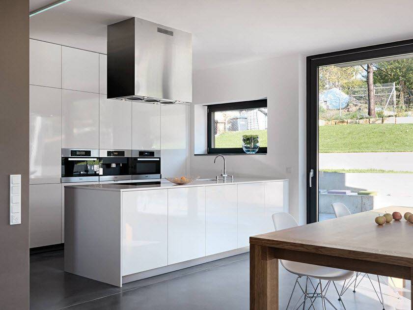 Если вы часто открываете окна и в районе, где вы живете, много пыльного воздуха, стоит приобрести белую глянцевую кухню. Темные блестящие покрытия даже при малейшем попадании пыли могут выглядеть совершенно неухоженными, а влажная уборка окажется такой же трудоемкой, как мытье окон или зеркал