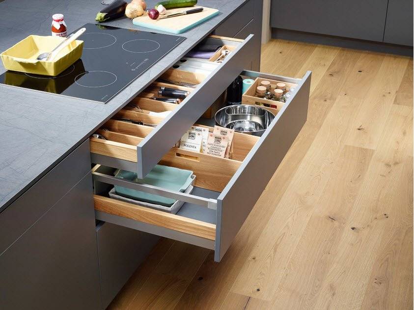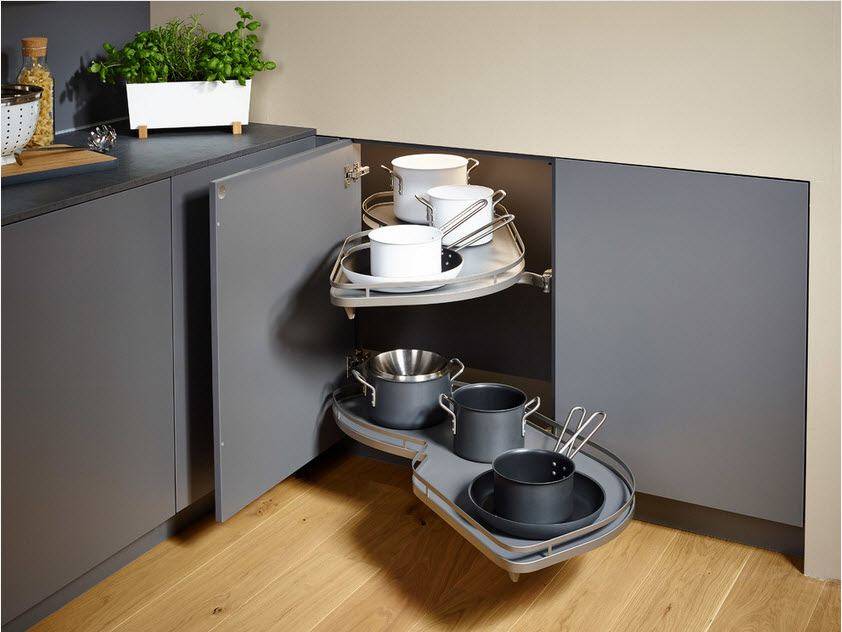 Есть куча разной фурнитуры для углов, для мусорных вёдер, для открывания по нажатию и т.д., но это уже не обязательно, и лучше мучайте вопросами про это конкретных изготовителей кухонь.