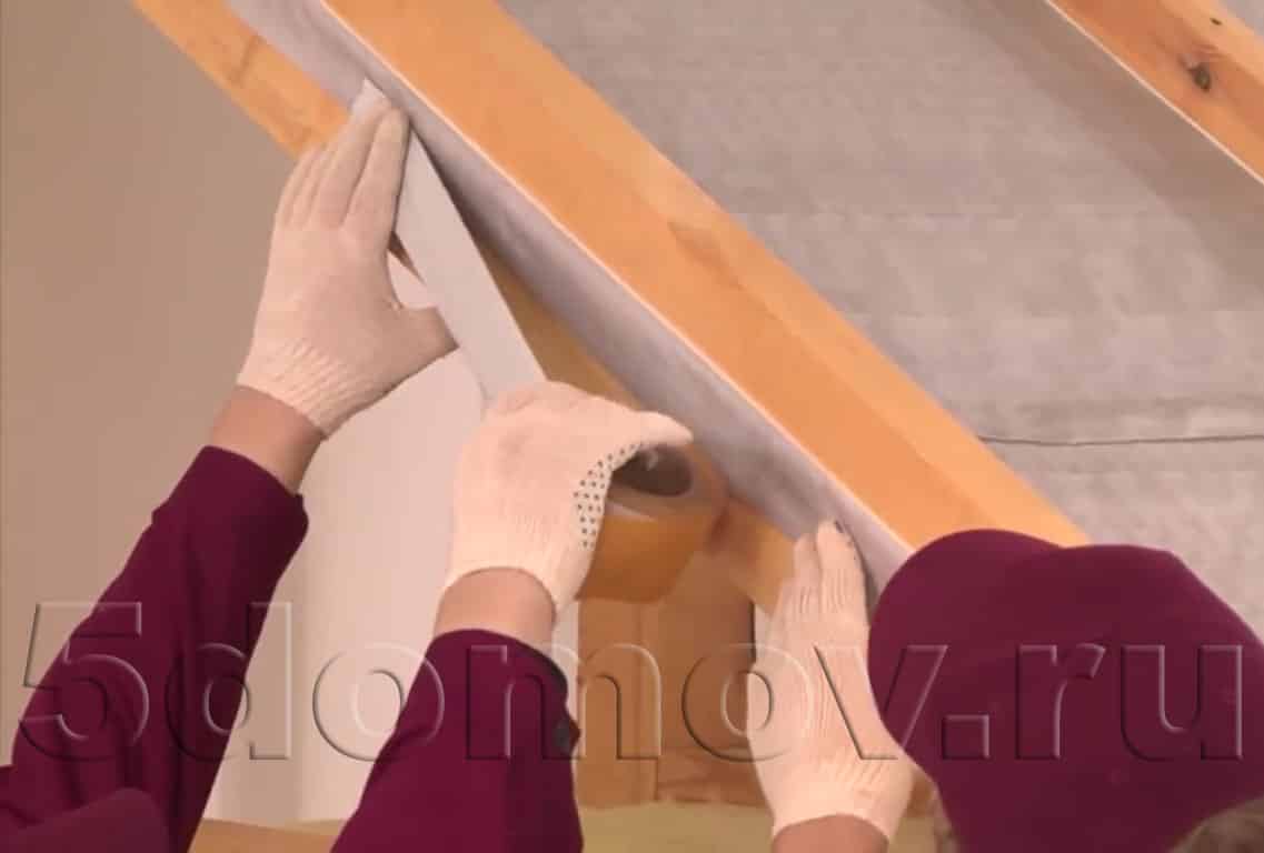 Все стыки пароизоляции с другими поверхностями необходимо проклеить клейкой лентой для лучшей герметизации