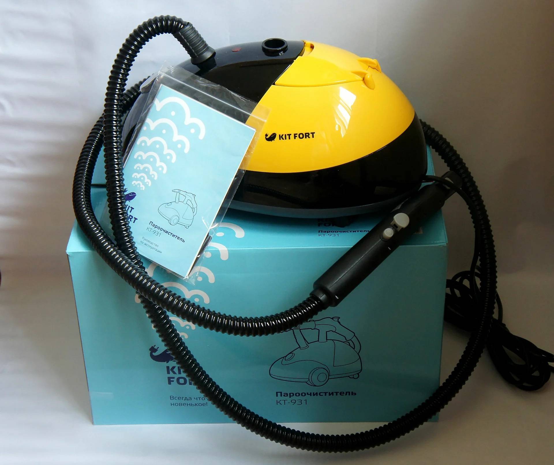 Один из лучших пароочистителей от фирмы Китфорт может похвастаться мощностью 2000 Вт и давлением 4 бар. Объем его бойлера составляет 1.5 литра, а весит устройство 8.1 кг. Работать пароочиститель может в течение 60 минут.